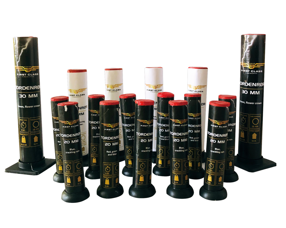 Luftbombesortiment fra First Class-serien indeholder 17 kraftige luftbomber i flotte nuancer, perfekt til at fylde himlen med festlige eksplosioner nytårsaften.