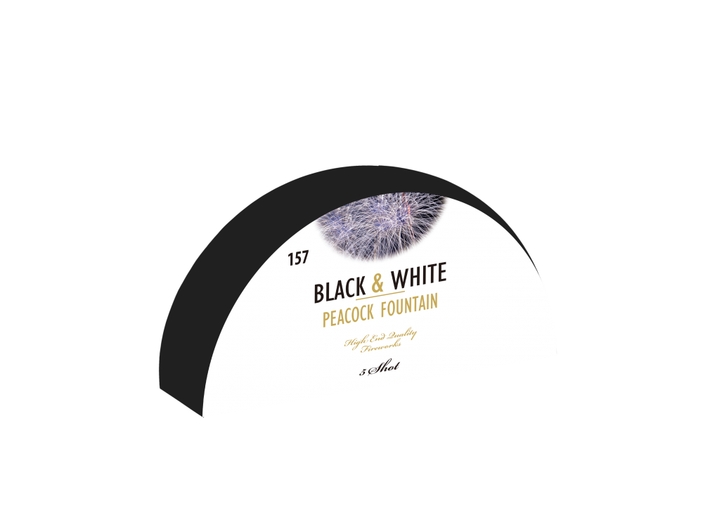 Krakatau fra serien Black & White er en peacock-fontæne med 5 skud og 92 g krudt. Skab flotte, farverige effekter til nytårsaften.