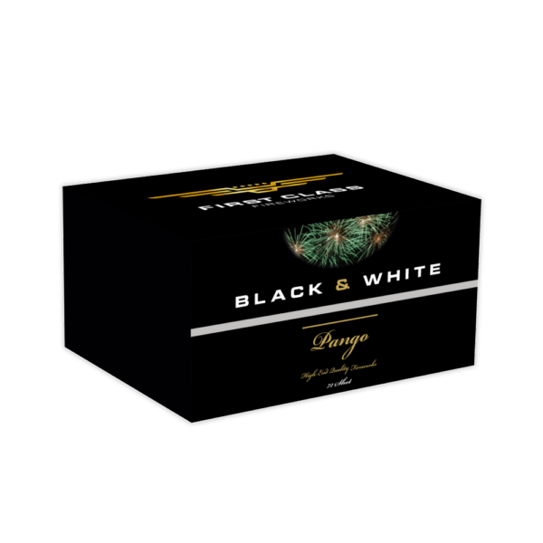 Pango fra serien Black & White er et 30 mm compound guldbatteri med 72 skud og 1800 g krudt. Et ekstremt kraftfuldt batteri med et tempo, der vil vælte publikum bagover til nytårsaften.